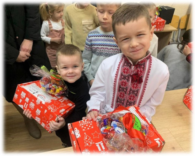 Pictured Below: Two Ukrainian children from Kyiv receiving our 2022 Shoebox Express gift boxes. (Thanks to Pasha Ozerugie for the photograph).